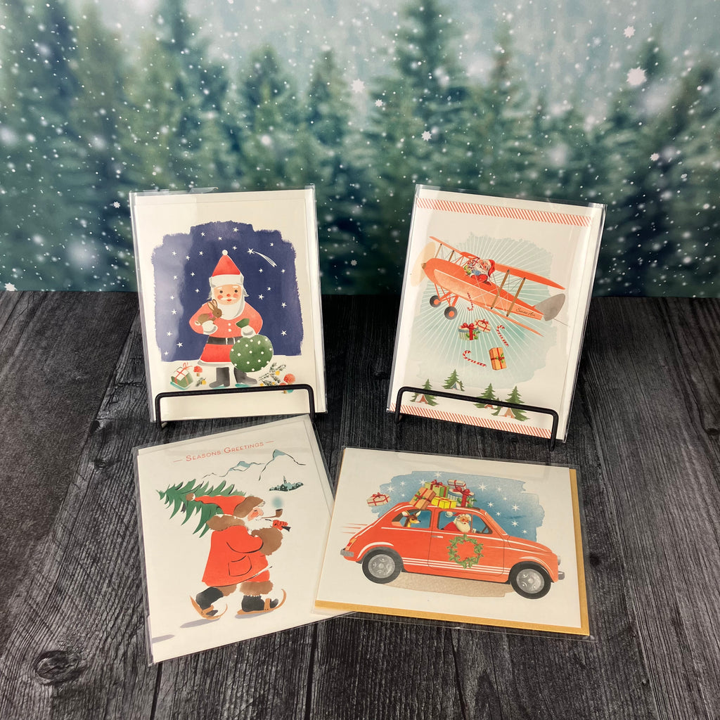 The tables are turned with Santa chauffeuring his reindeer. FSC certified, post-consumer recycled content paper. Measures 4.25" x 5.5" folded.